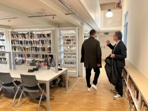 Recorrido por la biblioteca y las zonas de estudio, observando el uso de los espacios por parte del alumnado y el funcionamiento de los recursos bibliográficos y académicos.