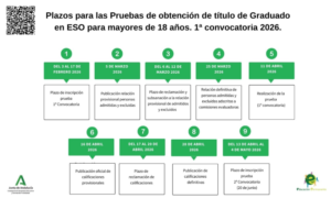 Para más información (normativa, calendario, inscripción, calificaciones, etc…) haga clic en: Pruebas de Graduado en ESO.